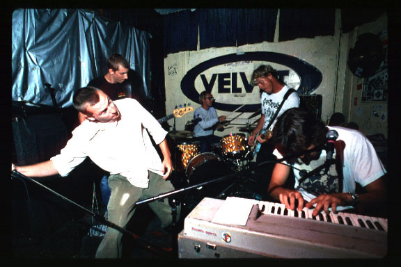 Ryan and Tod with Pete from Rocket From The Crypt. SD CA 1995 38k
